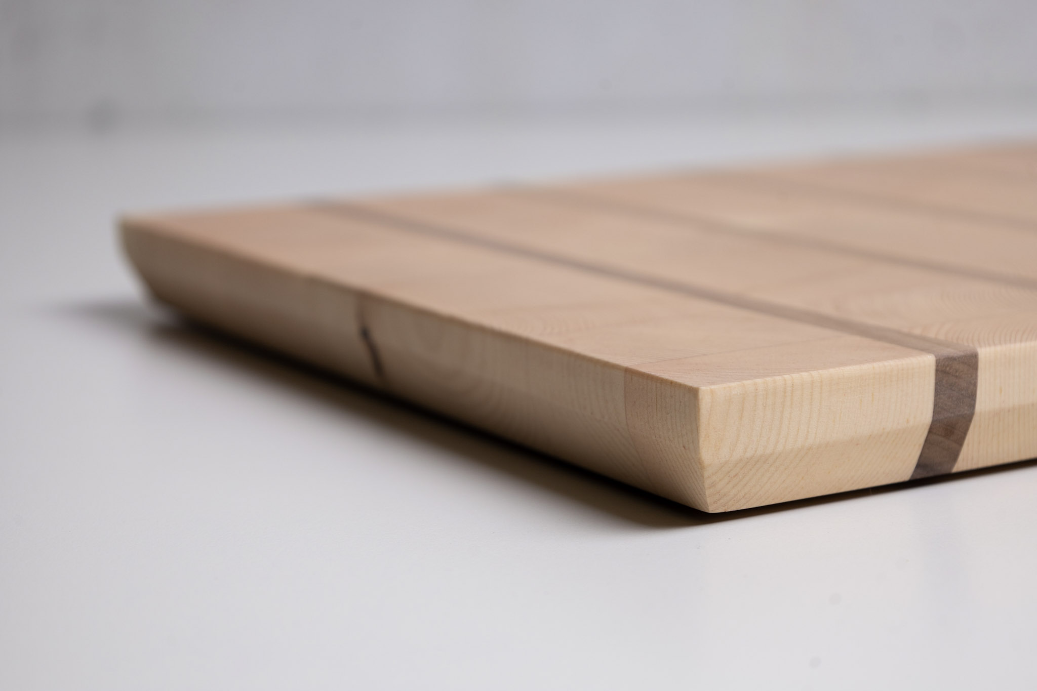 Unsere Standard Schneidebretterformate sind ca. 40x35x3cm. Wir können Schneidebretter auf Wunsch auch bis zu einer maximalen Größe von 80x35x3cm herstellen. Die großen Formate bieten sich auch als Deko-Bretter an. Sie können auf einem Esstisch platziert und mit Speisen wie Aufschnitte, Käse oder Gemüse belegt werden.